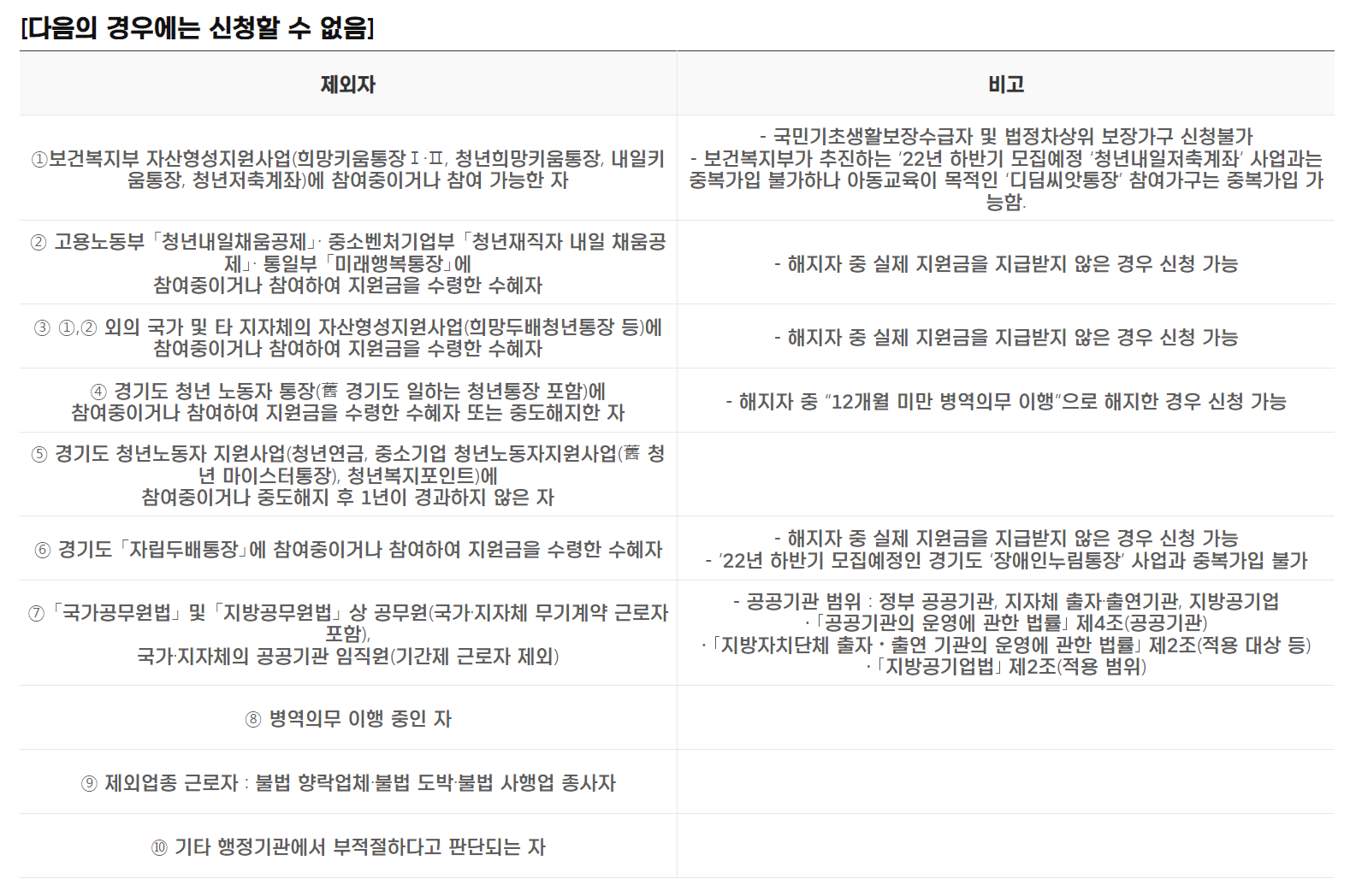 일반적으로 정부에서 진행하고 있는 다른 유형의 지원금을 받는 자는 신청이 불가함을 알 수 있습니다.